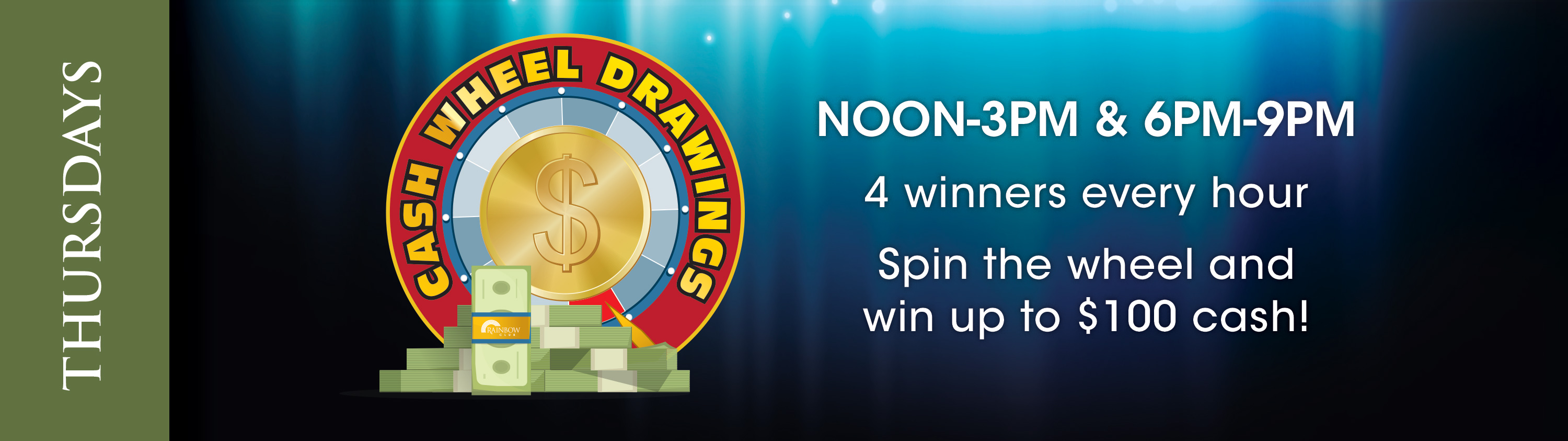Receive 1 drawing ticket for every 100 base points earned Thursday. Must be present to win